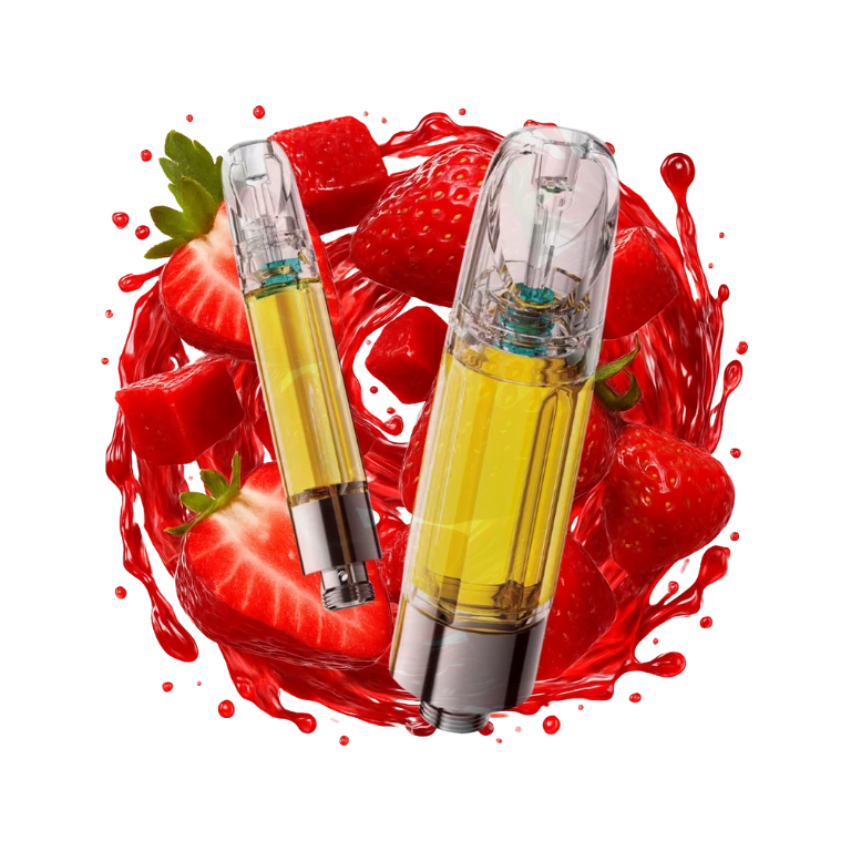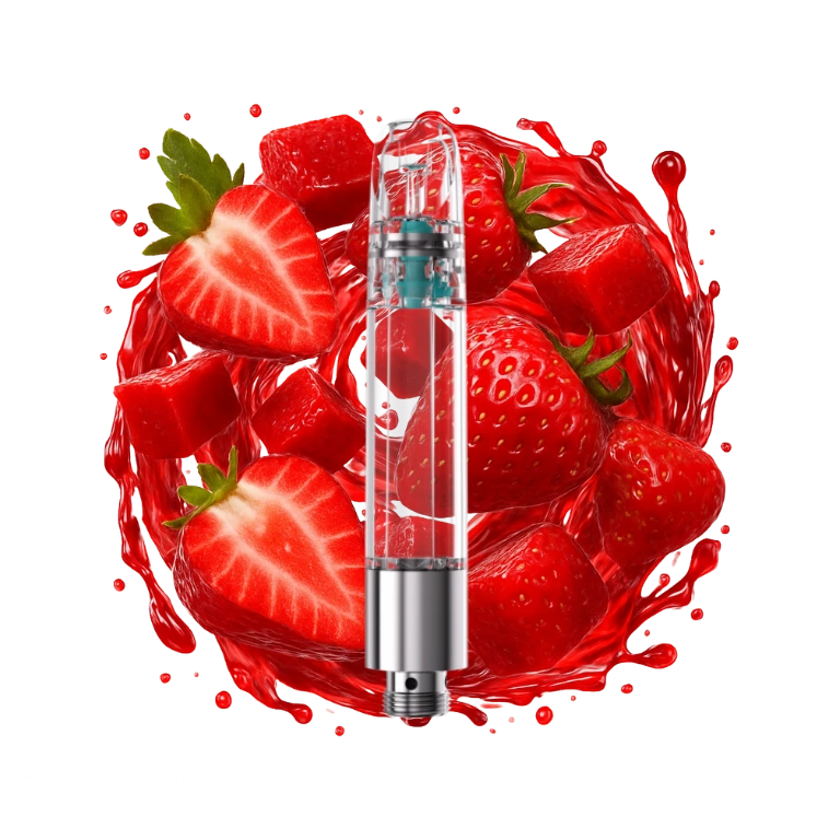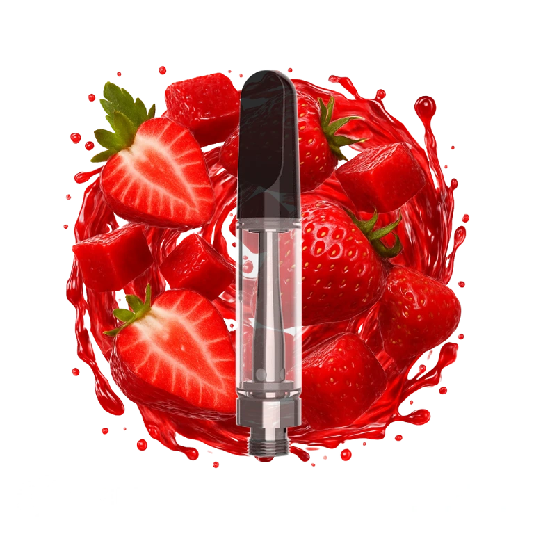 This strawberry strain vape is defined by its ripe strawberry flavor — sweet, fruity, and refreshing. The dominant terpenes are linalool, beta-myrcene, caryophyllene, and limonene, carefully combined to highlight the rich strawberry taste while supporting the uplifting and balanced effects of this sativa vape blend.